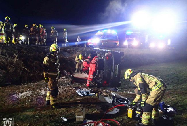Ob 6.01 je na cesti Reteče – Jeprca prišlo do trčenja kombiniranega in dveh osebnih vozil. Gasilci JZ GRS Kranj, GB Ljubljana in PGD Škofja Loka smo kraj dogodka zavarovali, s tehničnim posegom rešili dve osebi, odklopili akumulatorja, nudili pomoč reševalcem in policiji, nudili razsvetljavo, posuli razlite motorne tekočine z vpojnim sredstvom, z avtodvigalom postavili vozilo…