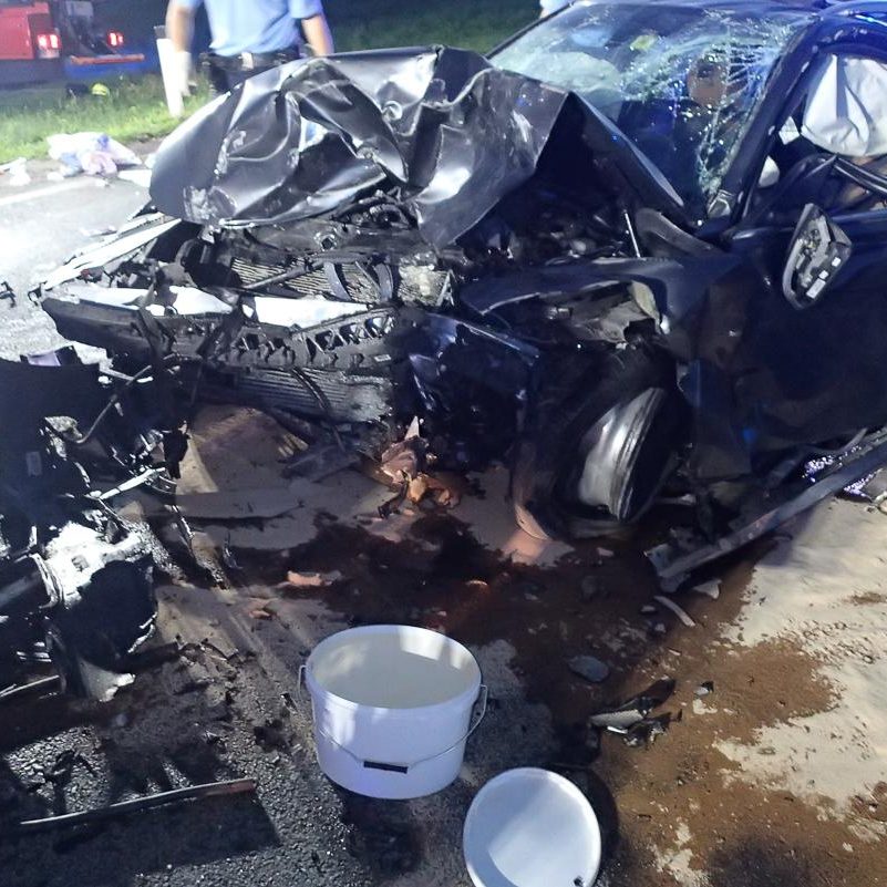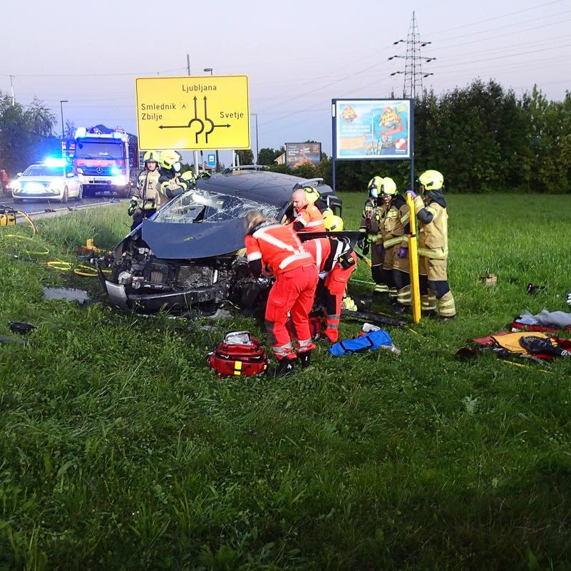 V petek, 12. 6. 202, ob 20:41 sta na Gorenjski cesti v Medvodah trčili osebni vozili. Gasilci GB Ljubljana in GARS Kranj smo zavarovali in razsvetljevali kraj dogodka, s tehničnim posegom iz vozila rešili ukleščeno voznico in v vozilo reševalne NMP Ljubljana prenesli nepoškodovanega dojenčka, odklopili akumulatorja ter po razlitih motornih tekočinah posuli vpojna sredstva. Voznik drugega vozila je kljub oživljanju na kraju podlegel poškodbam.