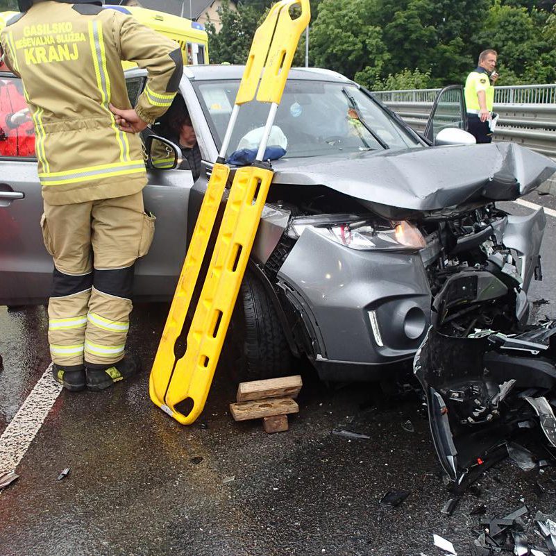 Ob 16.07 so na nadvozu kranjske obvoznice v Kranju trčila štiri osebna vozila. Gasilci GARS Kranj smo zavarovali kraj nesreče, odklopili akumulatorje, očistili vozišče razlitih motornih tekočin in nudili pomoč reševalcem NMP Kranj, ki so v nesreči pet poškodovanih oseb oskrbeli na kraju.