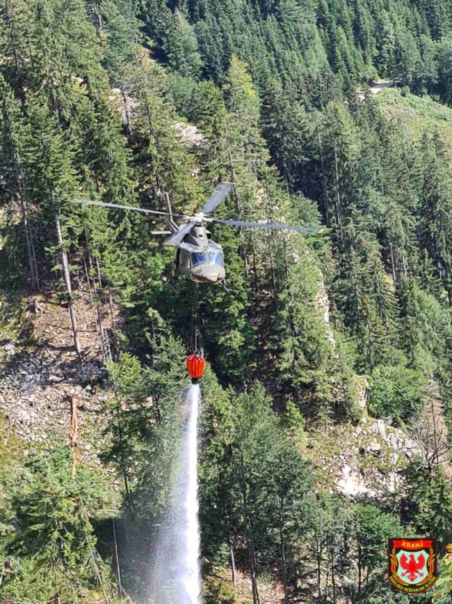 Danes ob 12:20 je zagorel gozd na zelo težko dostopnem in nedostopnem terenu na Zgornjem Jezerskem. Požar smo pogasili gasilci GARS Kranj, PGD Jezersko, Mavčiče in Breg ob Savi. PGD Kokrica je nudila pomoč pri vodenju zahtevne intervencije. V veliko pomoč pri gašenju nam je bil tudi helikopter slovenske vojske, ki je gasil požar na…