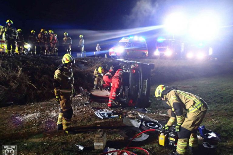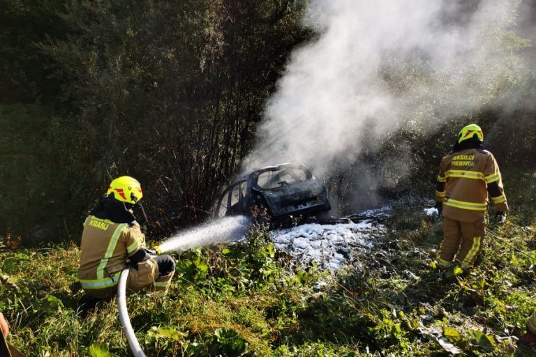 Ob 16.09 je na cesti Jezersko – Preddvor, naselje Kokra, občina Preddvor, osebno vozilo zapeljalo v jarek in zagorelo. Gasilci…
