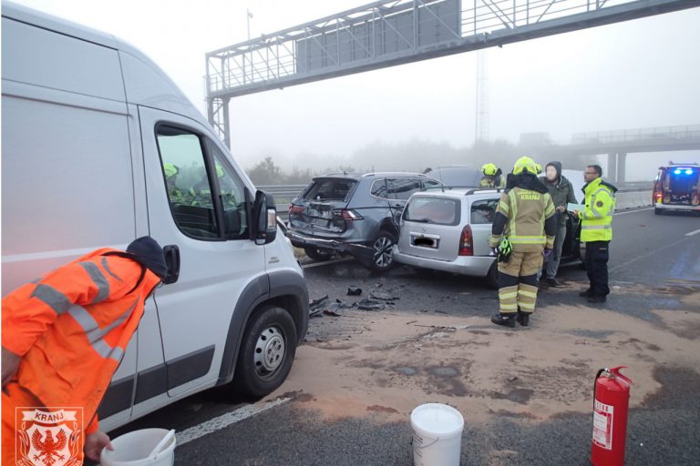 Ob 8.53 je za izvozom Tržič (gorenjska avtocesta) v smeri proti Karavankam, prišlo do naleta štirih osebnih vozil. Gasilci GARS…