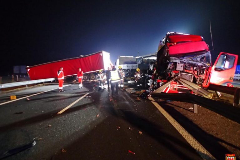 Ob 0.48 smo na gorenjski avtocesti pred izvozom Brnik, občina Šenčur, trčili dve tovorni vozili in avtobus. Gasilci GARS Kranj…